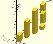 OpenSCAD variables are created by a statement with a name or identifier, assignment via an expression and a semicolon. The role of arrays, found in many imperative languages, is handled in OpenSCAD via vectors.