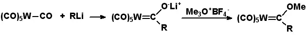 It occurs via the carbene species nowaday known as Schrock's carbenes