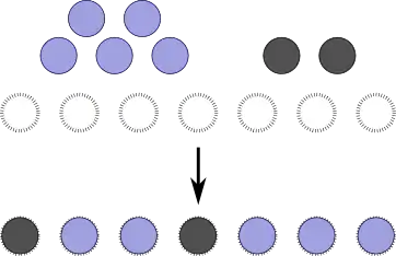 The number of objects in the first subset corresponds to the number balls before the first marker. Similarly, the number of objects in the p-th subset is equal to the number of balls between the p-th marker and the preceding one. Finally, the number of objects in the last subset is simply the number of balls after the last marker. In the figure, the integer assignment is
