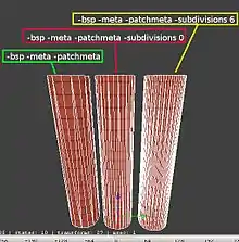 - Compile model.map with -v -meta -patchmeta in the bsp phase (if your curves look too "low-fi" add "-subdivisions 0" to the compile line. if you want it even more complex, increment the '-subdivisions' value). There is no need to run -vis or -light. You should now have model.bsp in your "maps" directory.