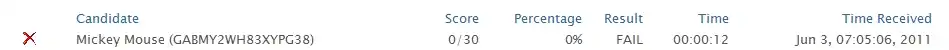 In this case, the candidate ID will be set as 12345ABCDE - whatever value you dynamically write into the HTML will show up as the candidate ID in the results e-mail and on the Question Writer Tracker.