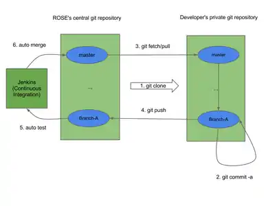 ROSE's source files are managed by git, a distributed revision control and source code management system.
