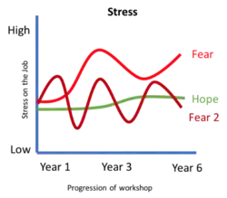 Provide example of how to draw graph over time. Ask each participant to draw one variable over time per piece of paper. Ask them to organize their variables in order of priority, and share in round-robin fashion.