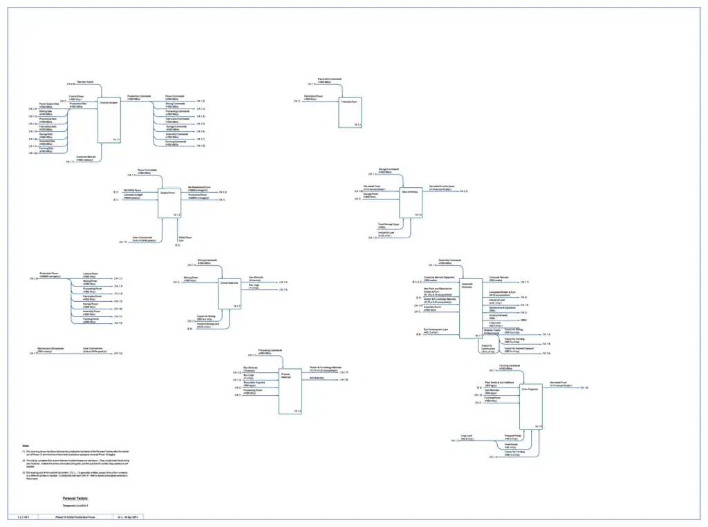 - Surplus - For this phase we will assume 100% surplus energy and material outputs above what is used to meet physical needs and maintenance. The surplus is used for expansion, to make custom items on demand, or for sale. Income from sales is used to buy items the Factory cannot make or goes to the owners.