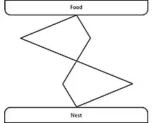 Figure 1. Schematic representation of maze linking food source to the nest via different path length.