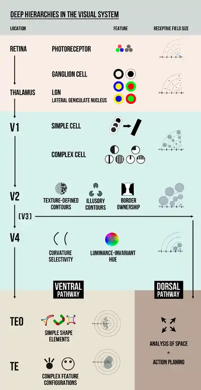 - ↑ Hubel, David H (1995). Eye, brain, and vision. Scientific American Library/Scientific American Books.