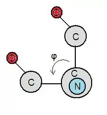 Torsion angles are also called dihedral angles. The torsion angle is the measure in degrees in bonds between atoms. Folding of proteins are influenced by the degree of rotation amino bonds can hold. There are two different types of torsion angles existing in polypeptide bonds. Phi, φ is the angle between the α-carbon and the nitrogen atom of a peptide bond. The other bond is called psi, ψ which is the angle between the α-carbon and the carbonyl group. To measure φ, one must look from the nitrogen atom towards the α-carbon to measure if the angle is negative or positive. The angle is negative if the α-carbon rotates counterclockwise and vice versa. Furthermore, to measure ψ, one must look from the nitrogen atom towards the carbonyl group. Likewise, the angle is negative if the carbonyl group rotates counterclockwise and vice versa.