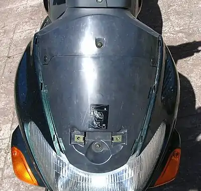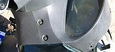 Remove the front windshield panel by removing the two silver screws and lifting the panel upwards and off.