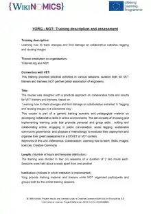 One of the operational objectives of the Wikinomics project was to develop, implement and evaluate a training module for the pedagogical use of free-culture and wiki methodologies in VET contexts and to conduct a series of collaborative wiki-based learning scenarios in which VET trainers will conduct meaningful activities in order to achieve shared results and learning outcome.