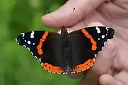 ![]() Vanessa atalanta, the red admiral. Adult pictured. |