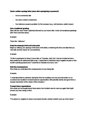 QuestionWhere can I find sample apology letters for being late to work?