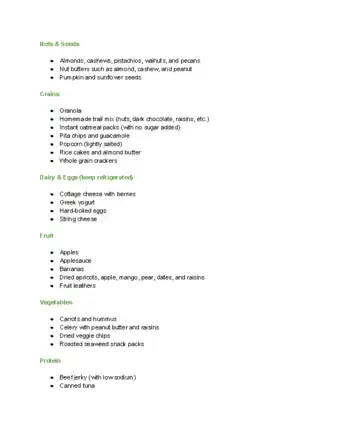 Snack, Meal, and Exercise Ideas