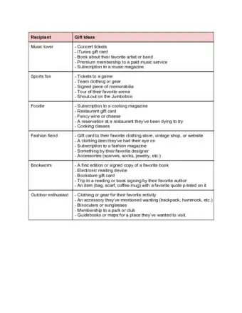 • Gifts for a music lover: concert tickets, a CD or digital music gift card, or a record player with a few records.