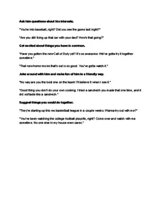 • Once you feel comfortable, you can work up to longer conversations. Start with something that both of you are interested in and work your way up to sharing personal details.