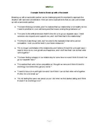 When you first meet a narcissist, they’re charming, fun, and affectionate. Once you’re dating, however, they begin to break you down by criticizing and manipulating you.[1] Leaving a narcissist peacefully can be tricky, but we’re here to help you make a clean break. Keep reading to find out how you can break up with a narcissist via text and move on to a happier future.