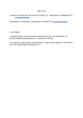 • Example: [Google Maps directions for driving from Nashville, TN to Santa Rosa Beach, FL]. (23 August 2018). Google Maps. Google. Retrieved from shorturl.at/esuD5