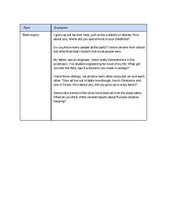 • Delve into "life story" topics. Ask where your conversation partner is from, how he grew up, and so on.