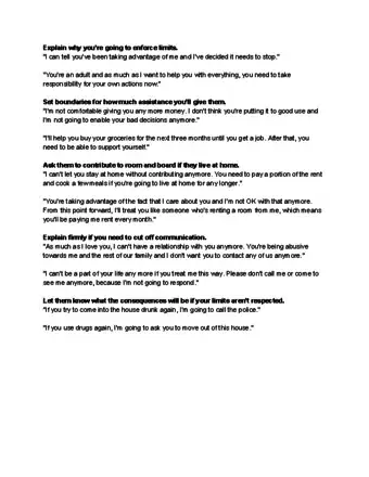 4Follow through when boundaries are violated. Show your adult children that you mean business and will not allow the unacceptable behavior to continue. You can do this by actually enforcing the consequence you said you would.[4]