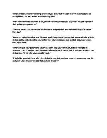 - For example, if the teen misses curfew by a few minutes, you might not say anything. However, when they arrive well before curfew, you might say, “I really appreciate you being responsible and making curfew tonight!”