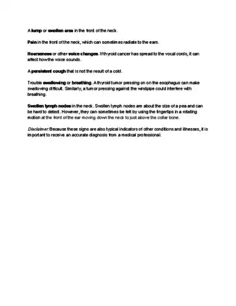 - ↑ https://www.cancer.org/cancer/thyroid-cancer/detection-diagnosis-staging/signs-symptoms.html