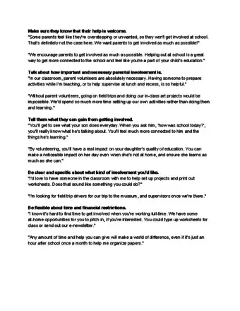 4Publicize volunteering opportunities by telling parents. Keep parents informed of these opportunities. If you’re a principal, send home notes informing parents about school-wide events. Teachers can provide information about opportunities in their classrooms. Let the parents know as soon as possible and sent them reminders every few weeks as the event approaches.