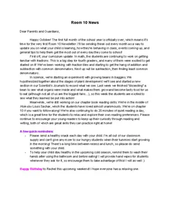 - You can send parents a letter or email about the school program, such as the classroom curriculum and any school events.