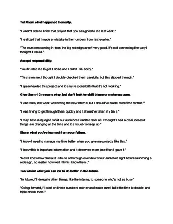 • This ultimately shows your boss that you understand the gravity of the situation, that you aren’t afraid of accountability, and that you want to work to move past problems rather than covering them up.