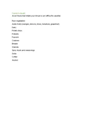 • Try not to eat dry foods, as they can make your throat sore.