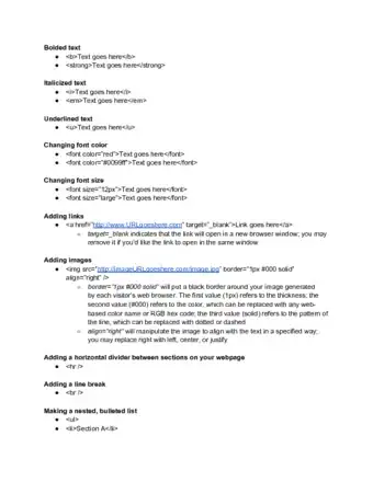 10Spruce up your page with line breaks, horizontal lines, and images. Now it's time to try adding things besides text to your page. Try out the following tags, or click the links for more information. You'll need to use an online image hosting service so you have a URL to link to in the image tag:
