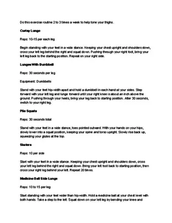 Do forward lunges. Lunging on all sides is the most beneficial -- your thighs need to be worked on all planes.
