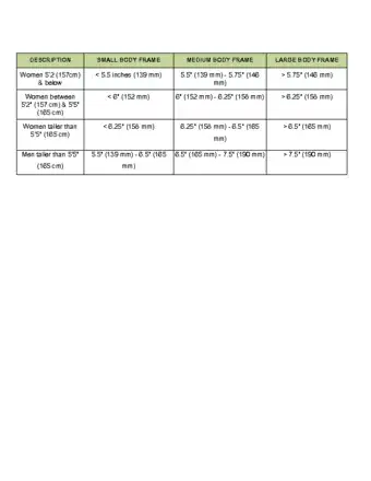 Body frame size, which accounts for bone mass and muscle mass, plays an important part in determining theoretical weight ranges. These ranges in turn act as guides for people to determine the weight they should be, depending on their frame size. There are three frame size categories: small, medium, and large. Each range varies, depending on your gender. You can determine which category you are by measuring the circumference on your wrist or the breadth of your elbow. Step 1 below begins to detail each method.