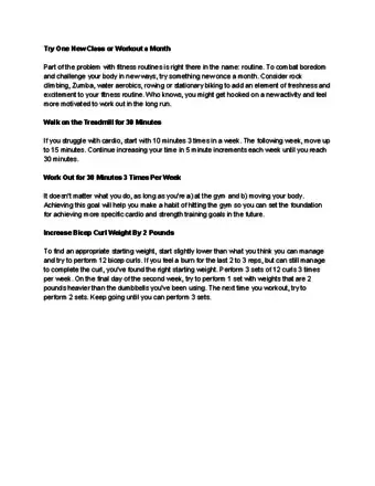 Try setting specific goals that you'd like to achieve. For example, you may set your goal to run a mile in under 6 minutes or to complete 50 push-ups. -