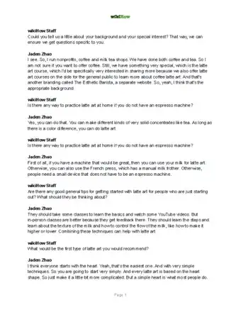 This article was co-authored by Jaden Zhao. Jaden Zhao is a Barista and the Owner of Jiaren Cafe & Yoga Studio in Santa Clara, California. Her cafe specializes in matcha drinks, espresso, coffee, fruit drinks, and herbal drinks. Additionally, the cafe hosts classes and features a yoga studio and a community space. Jaden earned an MS from Santa Clara University Leavey School of Business and a BA from the University of Wisconsin-Madison.