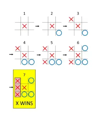 • For example, take a piece of paper and draw a tic tac toe board with the top row "X O _", the middle row "O _ _," and the bottom row "X _ _." If you place your third X in the bottom right corner, it's in line with both of your other X's.