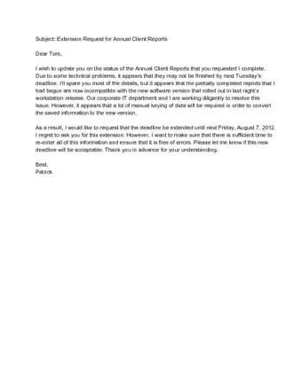 - Be aware of the time constraints facing the recipient as well. They may be under their own deadlines that will now need to be pushed back. For example, college professors are often required to submit midterm grades and schedule their paper deadlines accordingly.