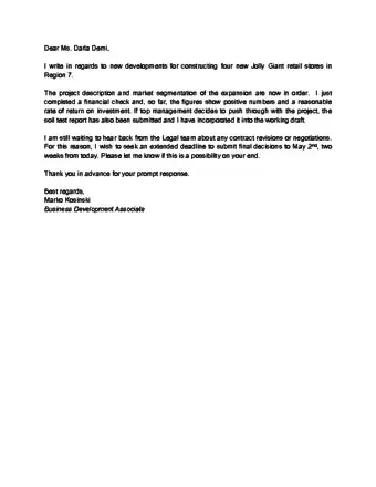 - Depending on the situation, you might need to consider your letter as part of an ongoing negotiation. In that sense, it is better to ask for a longer amount of time so that you can compromise and meet in the middle.[7]