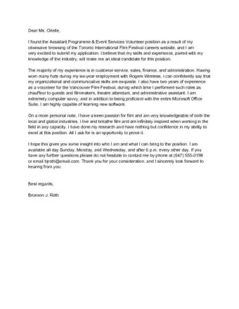 2Include a resume. Even though you discussed your skills, experience, and qualifications in the letter, you should still send a resume with your letter. This will let the hiring party know the details of your work history and education, with specifics like the duration of a given job or volunteer service. Attaching a resume also shows a certain amount of professionalism on your part. It lets the hiring party know that you take the position seriously, and are willing to work for the opportunity to be a part of the organization.