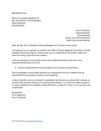 - If you’re in doubt about who to address your letter to, use “[Department] Hiring Manager.”