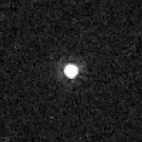 The New Horizons spacecraft, which successfully flew by Pluto in 2015, observed Ixion from afar using its long range imager on 13 and 14 July 2016.[12] The spacecraft detected Ixion at magnitude 20.2 from a range of 15 AU (2.2 billion km; 1.4 billion mi), and was able to observe it from a high phase angle of 64 degrees, enabling the determination of the light scattering properties and photometric phase curve behavior of its surface.[12]