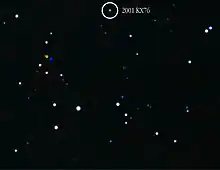The discovery of Ixion was formally announced by the Minor Planet Center in a Minor Planet Electronic Circular on 1 July 2001.[23] It was given the provisional designation 2001 KX76, indicating that it was discovered in the second half of May 2001. Ixion was the 1,923rd object discovered in the latter half of May, as indicated by the last letter and numbers in its provisional designation.[lower-alpha 3]