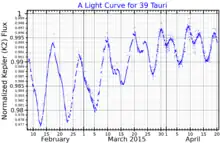 39 Tauri has been resolved into a pair of stars using speckle interferometry.[9] However, many observations have failed to resolve the secondary star.[10]