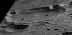 Oblique view of Abbe, facing west. Lunar Orbiter 5 image.