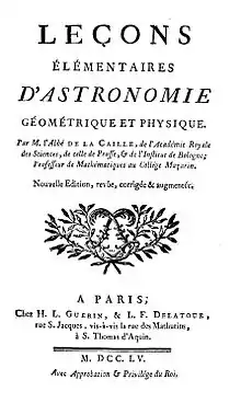 • ditto d'Astronomie (1746); 4th edition augmented by Lalande (1779)