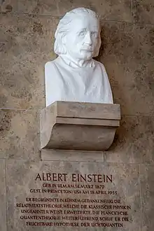 Albert Einstein (/ˈaɪnstaɪn/ EYEN-styne;[4] German: [ˈalbɛɐt ˈʔaɪnʃtaɪn] ; 14 March 1879 – 18 April 1955) was a German-born theoretical physicist who is widely held to be one of the greatest and most influential scientists of all time. Best known for developing the theory of relativity, Einstein also made important contributions to quantum mechanics, and was thus a central figure in the revolutionary reshaping of the scientific understanding of nature that modern physics accomplished in the first decades of the twentieth century.[1][5] His mass–energy equivalence formula E = mc2, which arises from relativity theory, has been called "the world's most famous equation".[6] He received the 1921 Nobel Prize in Physics "for his services to theoretical physics, and especially for his discovery of the law of the photoelectric effect",[7] a pivotal step in the development of quantum theory. His work is also known for its influence on the philosophy of science.[8][9]