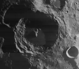 Amundsen is a large lunar impact crater located near the south pole of the Moon, named after the Norwegian explorer Roald Amundsen. It lies along the southern lunar limb, and so is viewed from the side by an observer on the Earth. To the northwest is the crater Scott, a formation of similar dimensions that is named for another Antarctic explorer. Nobile is attached to the western rim.[1]
