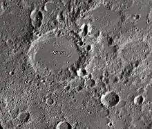 Apianus is a lunar impact crater that is located on the rugged south-central highlands of the Moon. It is named after 16th century German mathematician and astronomer Petrus Apianus.[1][2] It is located to the northeast of the crater Aliacensis, and to the northwest of Poisson. The worn crater Krusenstern is attached to the west-northwestern rim.