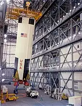 The Saturn V rocket used by Apollo 8 was designated AS-503, or the "03rd" model of the Saturn V ("5") Rocket to be used in the Apollo-Saturn ("AS") program. When it was erected in the Vehicle Assembly Building on December 20, 1967, it was thought that the rocket would be used for an uncrewed Earth-orbit test flight carrying a boilerplate command and service module. Apollo 6 had suffered several major problems during its April 1968 flight, including severe pogo oscillation during its first stage, two second-stage engine failures, and a third stage that failed to reignite in orbit. Without assurances that these problems had been rectified, NASA administrators could not justify risking a crewed mission until additional uncrewed test flights proved the Saturn V was ready.[46]