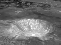 Aristarchus is a lunar impact crater that lies in the northwest part of the Moon's near side. It is considered the brightest of the large formations on the lunar surface, with an albedo nearly double that of most lunar features. The feature is bright enough to be visible to the naked eye, and displays unusually bright features when viewed through a large telescope. It is also readily identified when most of the lunar surface is illuminated by earthshine. The crater is deeper than the Grand Canyon.[1]