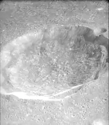 The first man-made impact upon the Moon was when the Luna 2 probe crash-landed just to the west-southwest of the crater rim on September 13, 1959,[3] according to the claim of one Hungarian astronomer who claimed to see an explosion of dust.