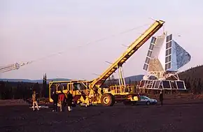 ![]() BLAST hanging from the launch vehicle in Esrange near Kiruna, Sweden before launch in June 2005 | |